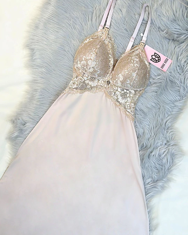 Possui detalhes em renda, pingente banhado a ouro (não enferruja nas lavagens), a camisola tem fecho o clique próprio para facilitar a amamentação.