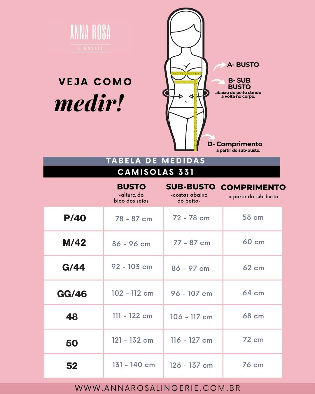 É INDISPENSÁVEL O USO DA TABELA DE MEDIDAS. Consulte a tabela para garantir o tamanho ideal e ajuste perfeito para você.