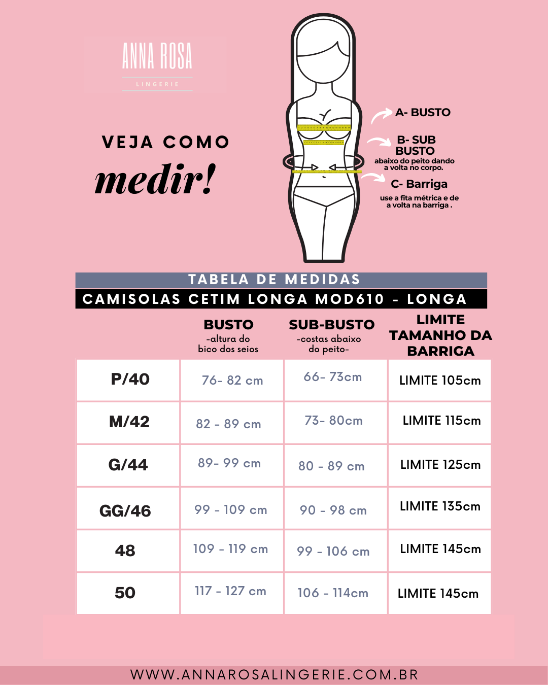 O uso da tabela de medidas é indispensável para garantir o tamanho ideal.