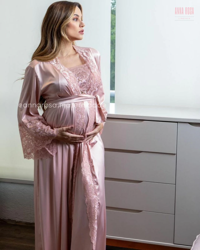 O Conjunto de Camisola Longa em Cetim com Toque de Seda e Robe é mais que um pijama: é uma peça premium, elegante e funcional, que oferece o equilíbrio perfeito entre beleza e praticidade para as mamães que desejam se sentir seguras e sofisticadas em todas as fases da maternidade.