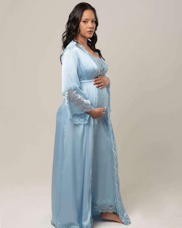 O Conjunto de Camisola Longa em Cetim com Toque de Seda e Robe é mais que um pijama: é uma peça premium, elegante e funcional, que oferece o equilíbrio perfeito entre beleza e praticidade para as mamães que desejam se sentir seguras e sofisticadas em todas as fases da maternidade.