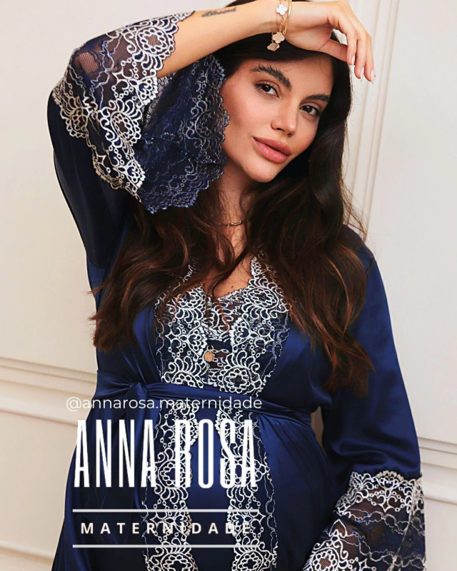 Para mais sofisticação e elegância as peças de camisola e robe tem acabamento na barra todo trabalhado em renda.