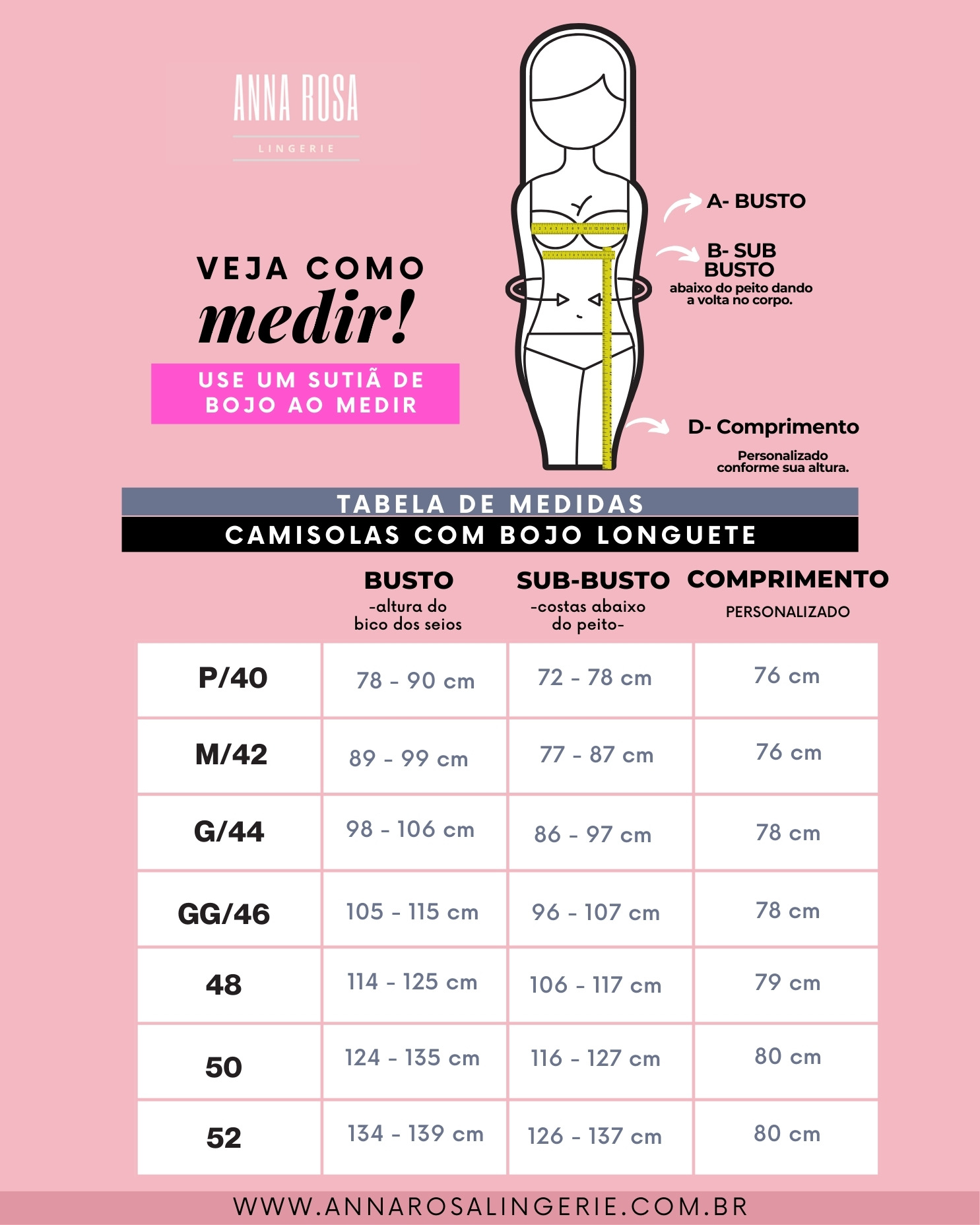 Confira a tabela de medidas para escolher o seu tamanho ideal.