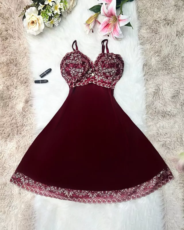 Conjunto confeccionado em Liganete Poliester (também conhecida como malha fria), um tecido de alta durabilidade, maleável e superfino, proporcionando frescor, conforto e excelente caimento no corpo. Os detalhes em renda deixam a peça ainda mais sofisticada.
