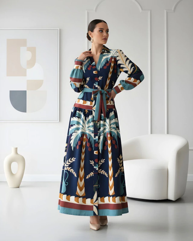 Vestido Longo Estampado com Botões Embutidos e Manga Bufante - NOVA COLEÇÃO.